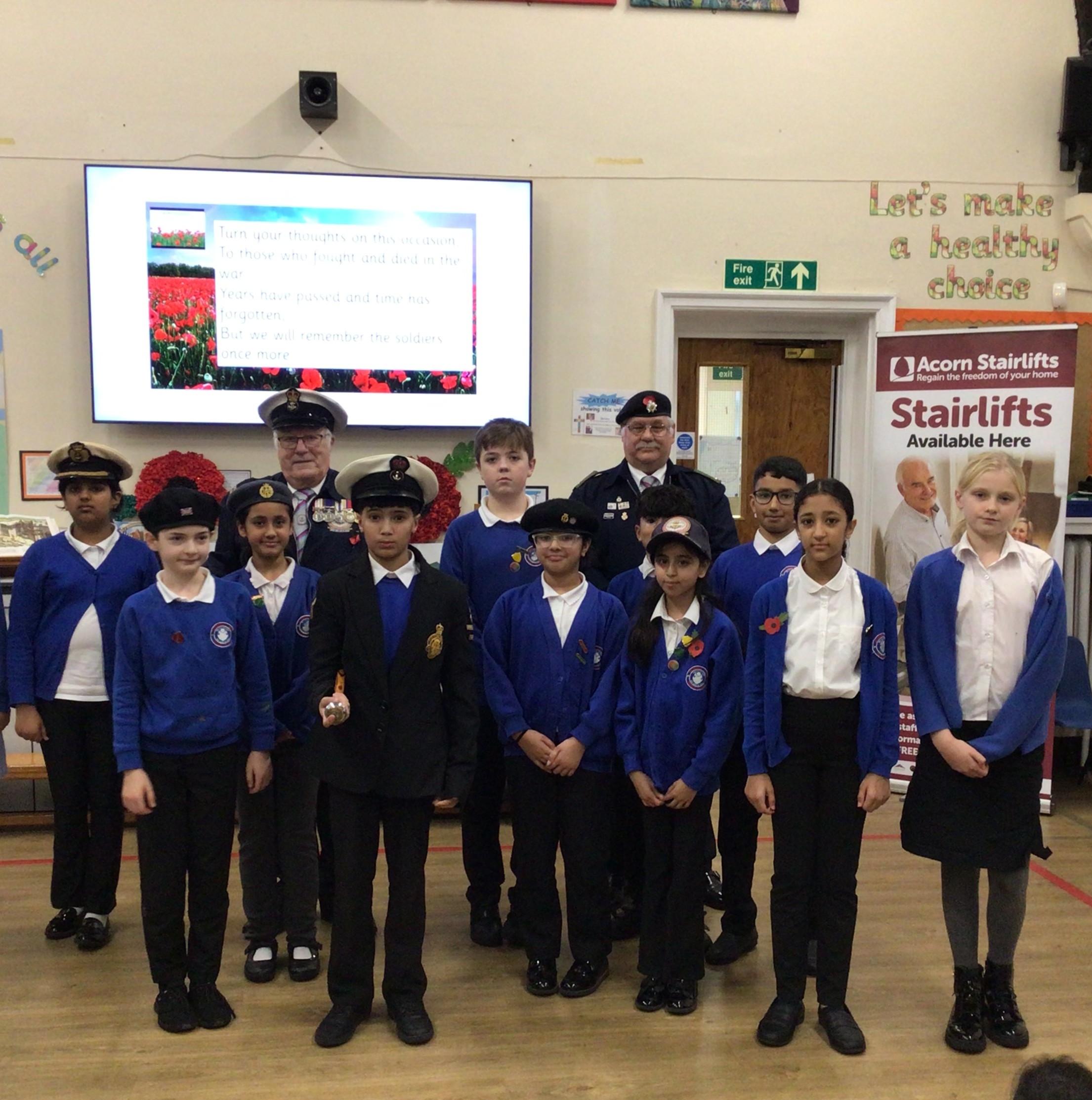 Every year for the past 12 years or so I and one of my colleagues (This Year Tony Finbow) go to St Phillips school, on or around Remembrance and do a full service. I dress the children up I have 5 of our service and national flags, along with a kind lady who plays the bugle, for the Last Post.