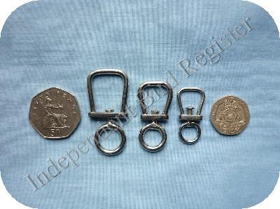 Stainless steel welded square top swivels. 3 sizes available. LARGE: Suitable for Hawks and Falcons. MEDIUM: Suitable for smaller falcons, Barn Owls etc. SMALL: Suitable for Kestrels and Small Owls